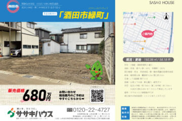 『酒田市緑町』建築条件付き宅地《1区画》 酒田市の幹線道路近くの閑静な住宅街、緑町に日当たりの良い南西道路に位置する宅地が1区画です。 小学校、中学校まで徒歩10分と、お子様が居られるご家庭にもおすすめの立地となっており […]